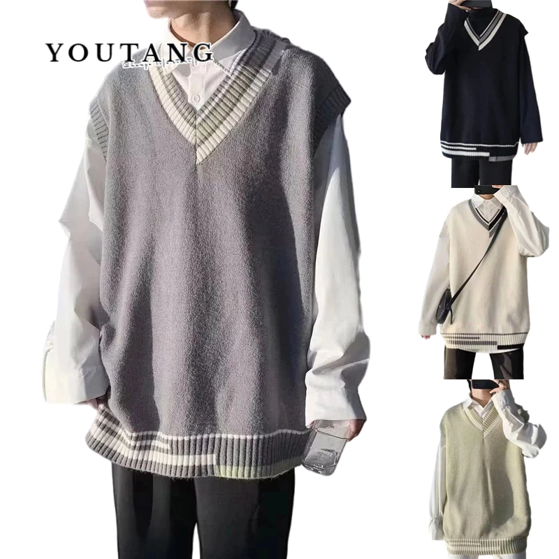 🔥 Áo Len Không Tay Cổ Chữ v Form Rộng Thời Trang Thu Đông Cho Nam Nữ đang giảm giá!