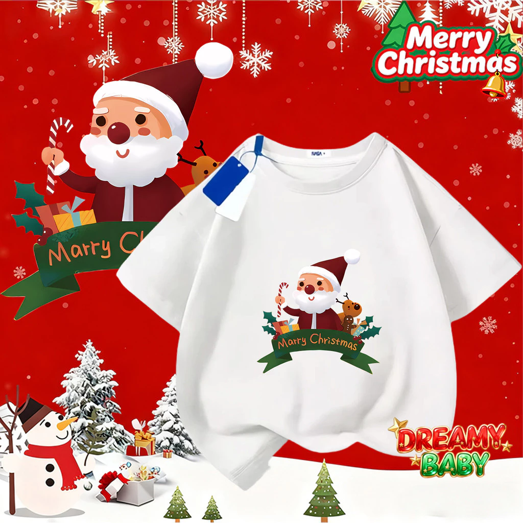 🔥 COD (Hồ Chí Minh) DREAMY BABY Niềm vui ngộ nghĩnh của ông già Noel và những chú tuần lộc Áo thun cho trẻ emTZ45 đang giảm giá!