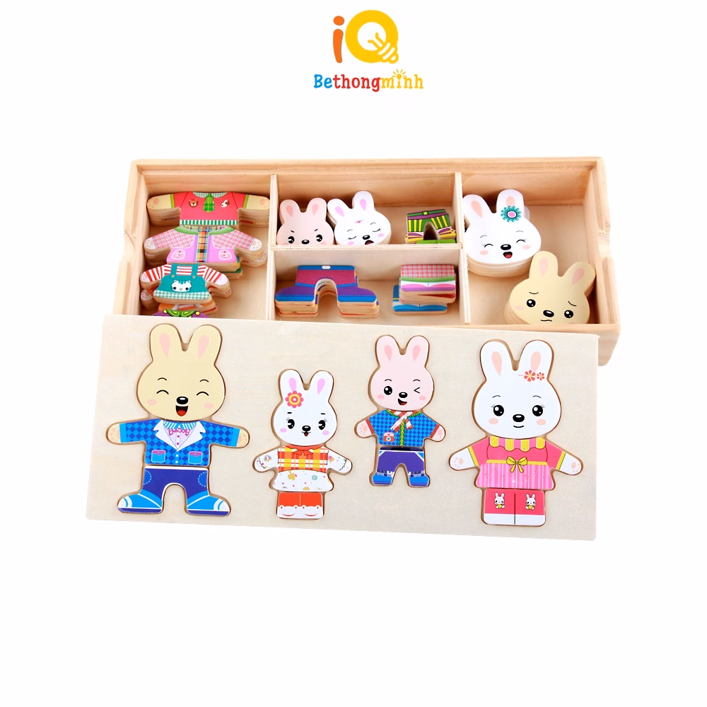 🔥 Đồ Chơi Bộ Ghép Hình Gia Đình Thỏ Bằng Gỗ Cao Cấp BeThongMinh Thay Trang Phục Nhiều Chủ Đề đang giảm giá!