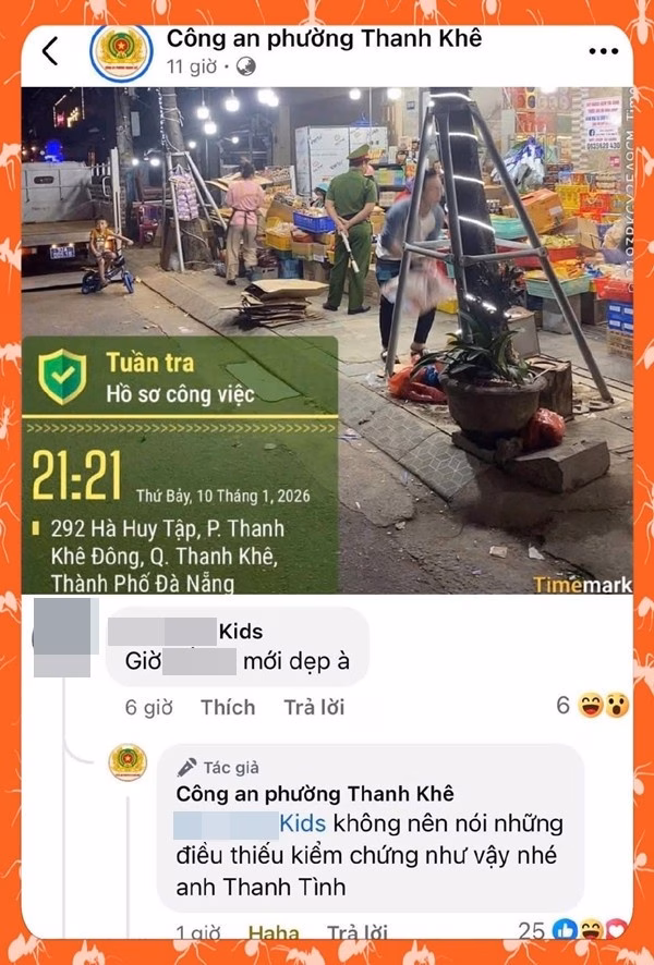 Một ảnh chụp màn hình đang lan truyền rộng rãi cho thấy Công an phường Thanh Khê (Đà Nẵng) đã trả lời một bình luận không phù hợp trên Facebook bằng cách gọi tên thật của người dùng nickname.