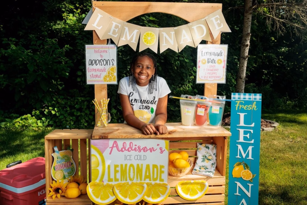 Addison Robinson, 11 tuổi tại quầy nước chanh di động bên ngoài nhà mình ở thị trấn Ypsilanti ngày 3/7. Cô bé đã bán nước chanh đóng gói sẵn từ năm 6 tuổi và tự quản lý một doanh nghiệp hoàn chỉnh bằng tài khoản ngân hàng của riêng mình. Ảnh Jacob Hamilton/MLive.comNước chanh đóng gói tại quầy nước chanh của bé Addison Robinson. Ảnh Jacob Hamilton/MLive.com