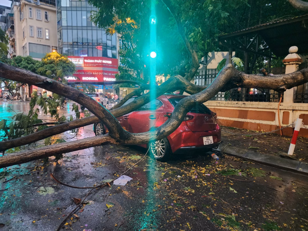 Một cơn dông mạnh kèm theo gió to kéo dài gần một giờ đồng hồ đã quét qua TP Hà Nội vào chiều ngày 19/7, gây ra những thiệt hại đáng kể về cây xanh và cơ sở hạ tầng. Hàng loạt cây xanh bị quật ngã, nhiều cành cây lớn gãy đổ và chắn ngang đường, một số cành cây thậm chí còn đè trúng ô tô đang lưu thông.