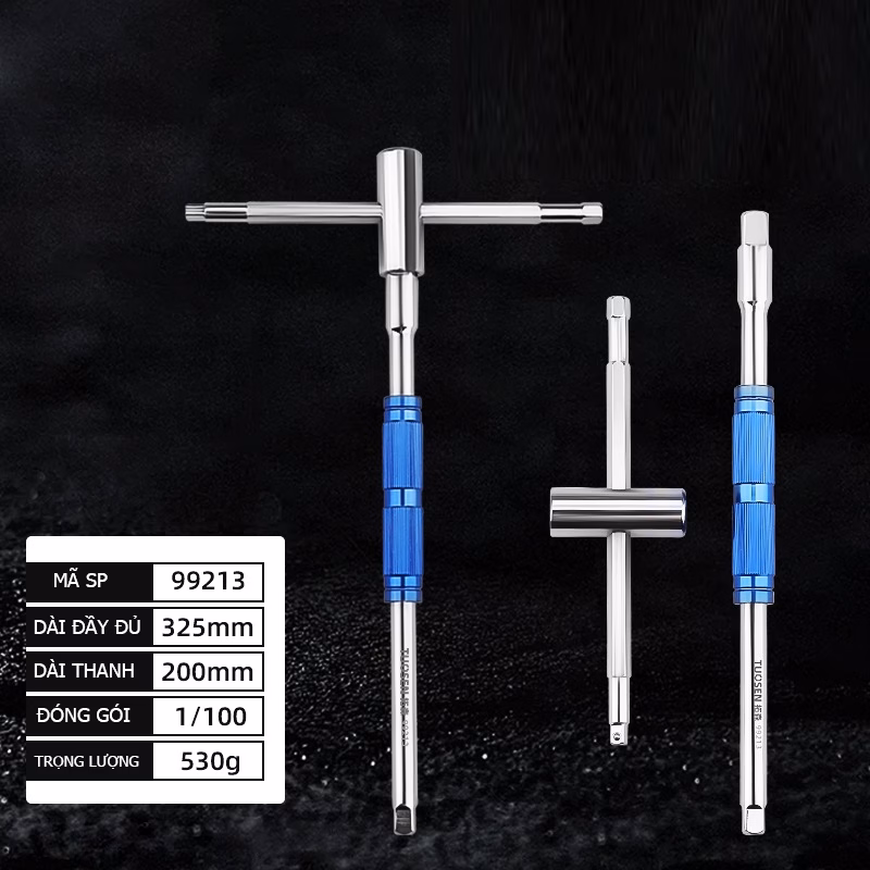 - Cờ lê chữ T cán dài: Loại cờ lê này có cán dài, thường được sử dụng cho các công trình yêu cầu không gian làm việc rộng.