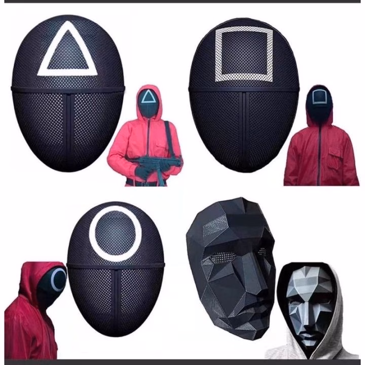 🔥 Mặt nạ trò chơi mực LUNAZAP, Mặt nạ Cosplay vuông tròn, Tiệc tam giác dễ thương Halloween Squid Game Play Đạo cụ nữ đang giảm giá!