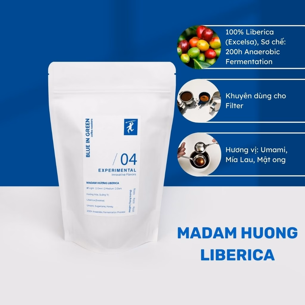 🔥 Cà phê rang Madam Hương Liberica – Rang Nhạt – Blue in Green Coffee Roasters đang giảm giá!
