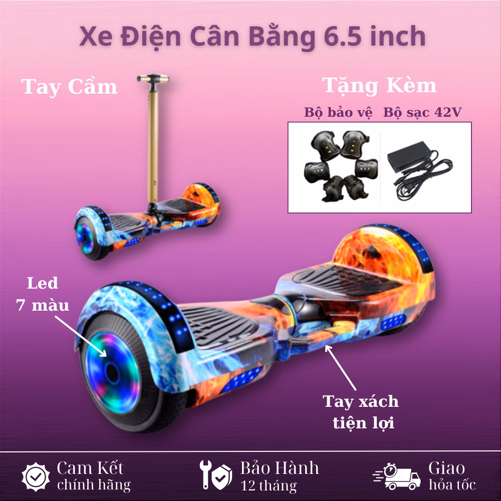 🔥 Xe Cân Bằng Điện Smart Balance 6.5 inch, Xe Điện Cân Bằng Tặng Tay Cầm Có Thể Điều Chỉnh, Phát Nhạc, Bluetooth, Đèn Led đang giảm giá!