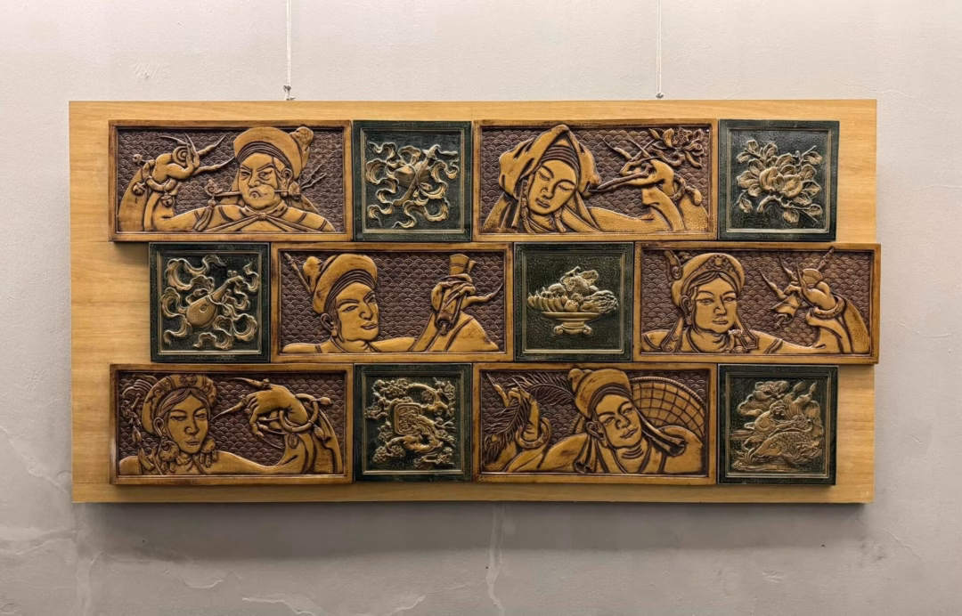 Không gian triển lãm được chia thành ba phần, giới thiệu đa dạng các tác phẩm mỹ thuật ứng dụng. Phần đầu tiên trưng bày các hình khối điêu khắc, trang trí truyền thống bằng chất liệu gốm, đất nung. Những hiện vật này không chỉ phản ánh kỹ năng và sự tỉ mỉ của nghệ nhân mà còn chứng minh khả năng kết hợp hài hòa giữa nghệ thuật truyền thống và phong cách đương đại. Sự kết hợp này tạo nên một phong cách riêng biệt, thể hiện sự sáng tạo và đổi mới trong lĩnh vực mỹ thuật ứng dụng.